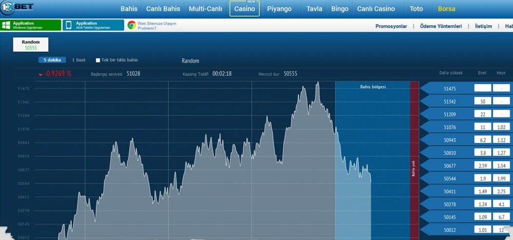 Uygulaması ile akıllı telefonunuzdan siteye üye olup, sınırsız ve özgürce canlı bahis ve casino oyunlarını oynayabilmek mümkün. Uygulamada da web sayfasında gerçekleştirilen her türlü işlemi kolayca uygulayabilirsiniz. 1xbet mobil uygulaması Windows Phone, Ios ve Android işletim sistemi ile çalışan tüm mobil cihazlara uygulama olarak indirilebiliyor. 1xbet apk da bunlardan birisidir. Artık size kalan sadece Mobil tarayıcılarınıza 1xbet’in resmi web adresini yazmak. 1xbet sitesinin web versiyonu olduğu gibi mobil versiyonu da mevcuttur. Ayrıca Sitede canlı bahis açılan her maçı canlı ve bedava olarak izlemek mümkün olup, bu hizmete bütün ülkeler ve bütün ligler dahildir. Yani 1xBet’mobil de her maç için tek maçlık bahis kuponu oluşturabilir, maçlara canlı bahis oynayabilir ve aynı zamanda da maçları canlı olarak telefonunuzdan izleyebilirsiniz.