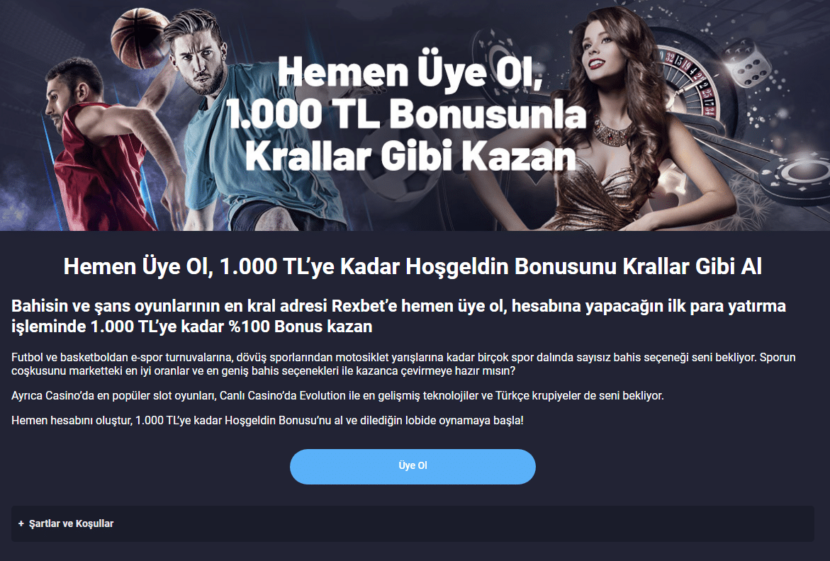 Üye olma ekranında rexbet tüm oyuncularından ilk üyeliği oluştururken bazı bilgileri talep etmektedir. Bunlar tüm sitelerin benzer form ekranında istediği kişisel bilgiler olacaktır. Bilgilerin ilk üyelik için kaydolma esnasında yazılmasıyla hesabınız açılacaktır. Yalnız +18 yaşında olanların kayıtlarını tamamlayabileceği unutulmamalıdır.
